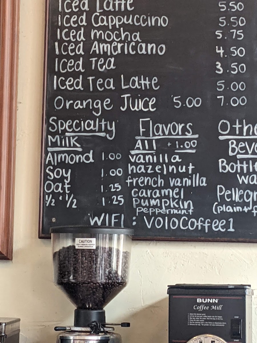 Volo Coffeehouse offers a straightforward, thoughtfully curated menu perfect for casual mornings and relaxed afternoons. The selection blends simple café staples with fresh, satisfying bites, creating an accessible dining experience that pairs well with the calm, welcoming atmosphere of the space.